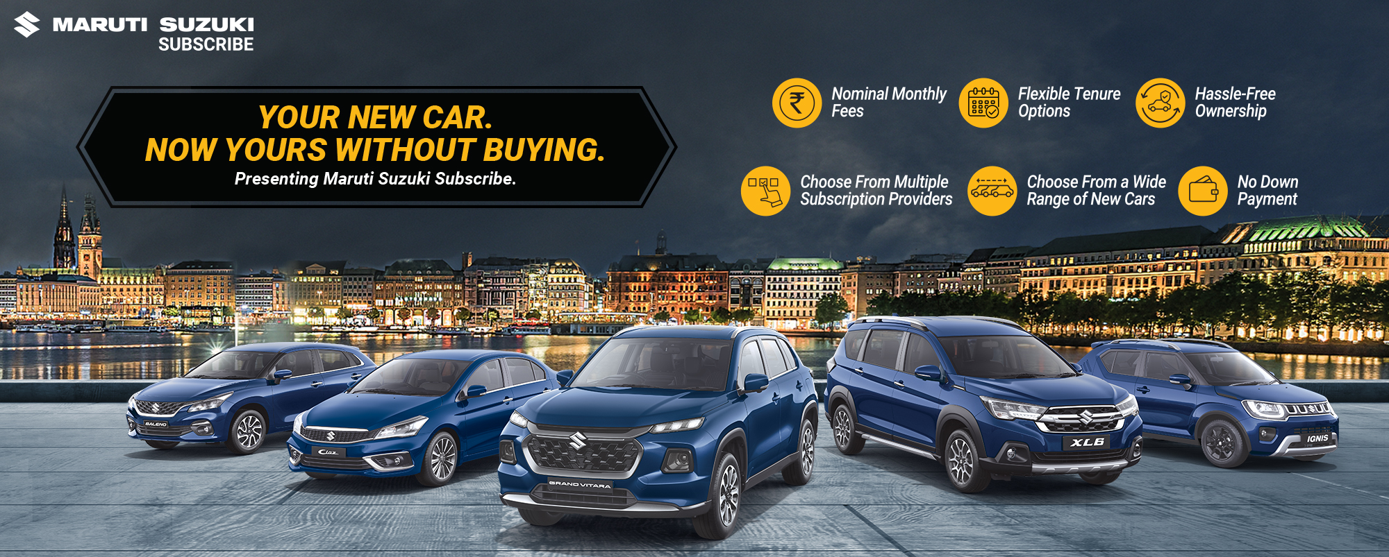 Maruti Suzuki Subscribe enables all customers to enjoy driving their preferred Maruti Suzuki cars without having to deal with all the financial responsibilities that come with owning a car.All you need to do is opt for a monthly subscription plan at a fixed monthly fee, which includes the routine maintenance and insurance costs, and choose a flexible tenure. At Motorcraft Sales in, Sahibabad, Sahibabad, all Hatchback, Sedan, SUV, the MUV models line-up includes Baleno, Invicto, EVitara, Jimny, Ciaz, Ignis, Fronx, Grand Vitara, XL6. Here, you will enjoy Maruti Suzuki Subscribe benefits such as: